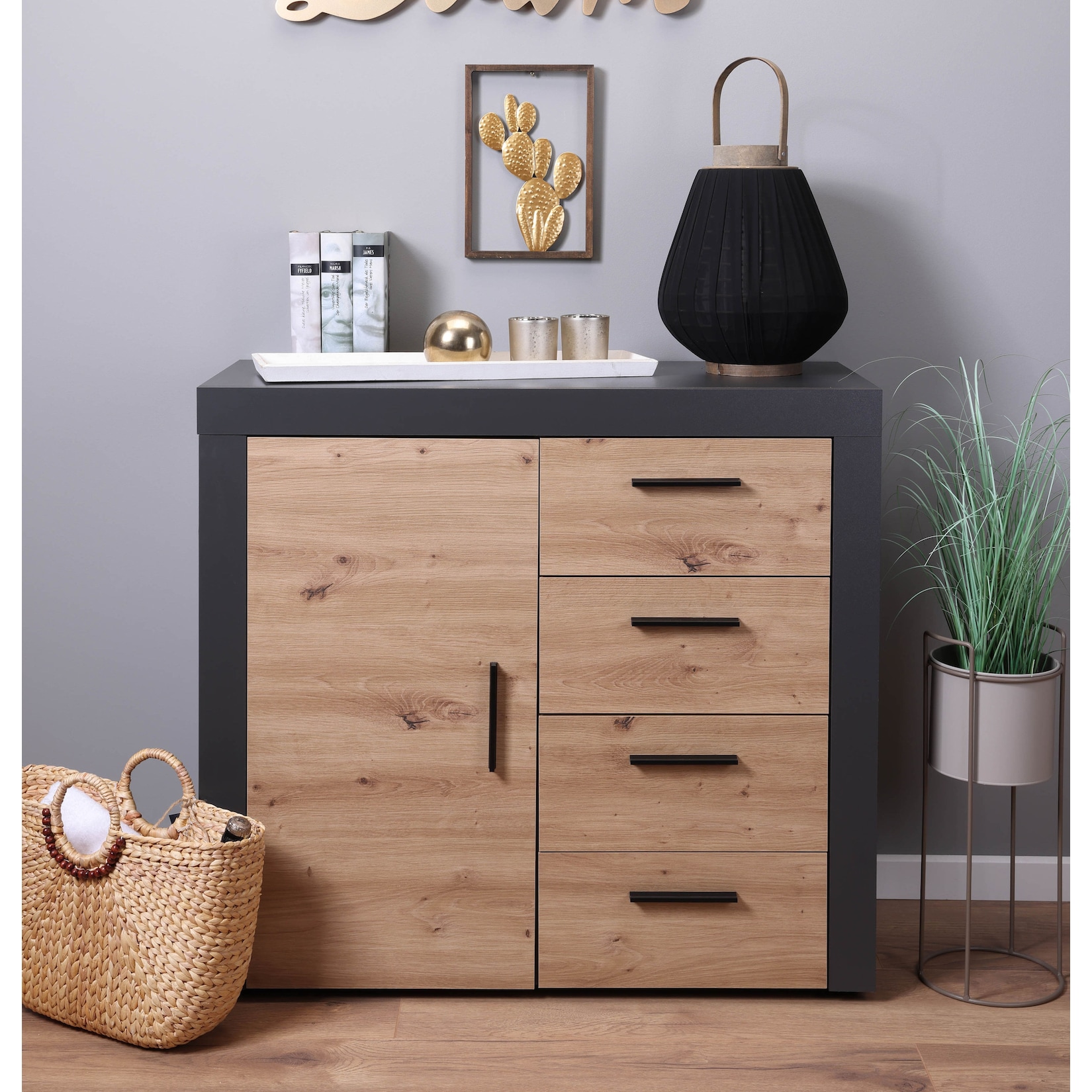 Inter Link Kommode Sideboard Corbeto – Anthrazit und Eiche Artisan Nachbildung: Stilvoller Stauraum für Ihr Zuhause