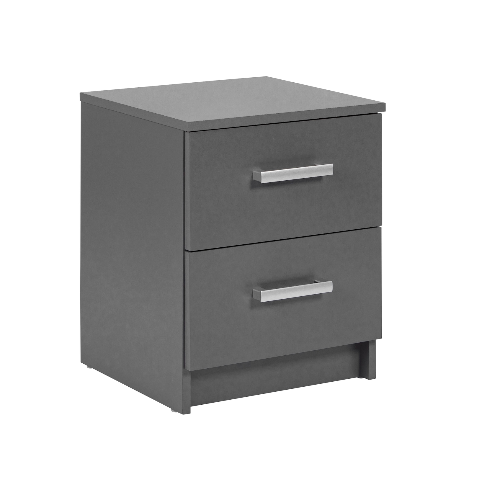 Der Nachttisch Elenzio ist in verschiedenen Ausführungen erhältlich, darunter Grau und verschiedene Holzdekore.