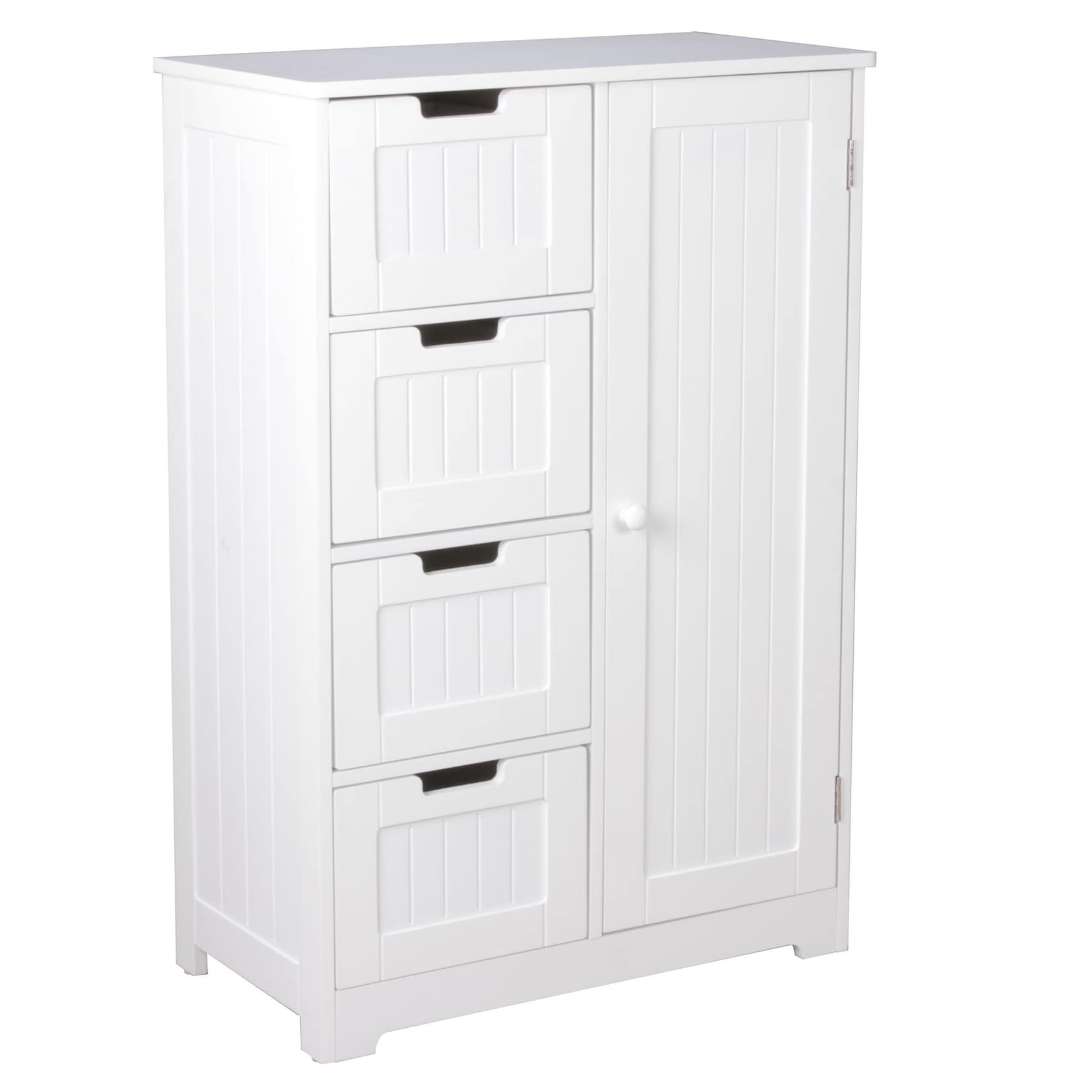 Aber dieser Schrank ist nicht nur schön anzusehen, sondern auch äußerst praktisch. Mit seinen vier geräumigen Schubladen und dem zusätzlichen Stauraum hinter den Türen bietet er ausreichend Platz für Handtücher, Kosmetikartikel, Reinigungsmittel und alles, was du im Badezimmer griffbereit haben möchtest. So sorgst du im Handumdrehen für Ordnung und Übersicht.