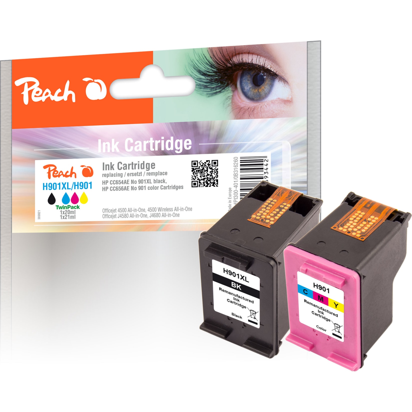 Peach HP 901 XL 2 Druckköpfe XL (Schwarz, Farbe) – Brillante Druckqualität zum Sparpreis