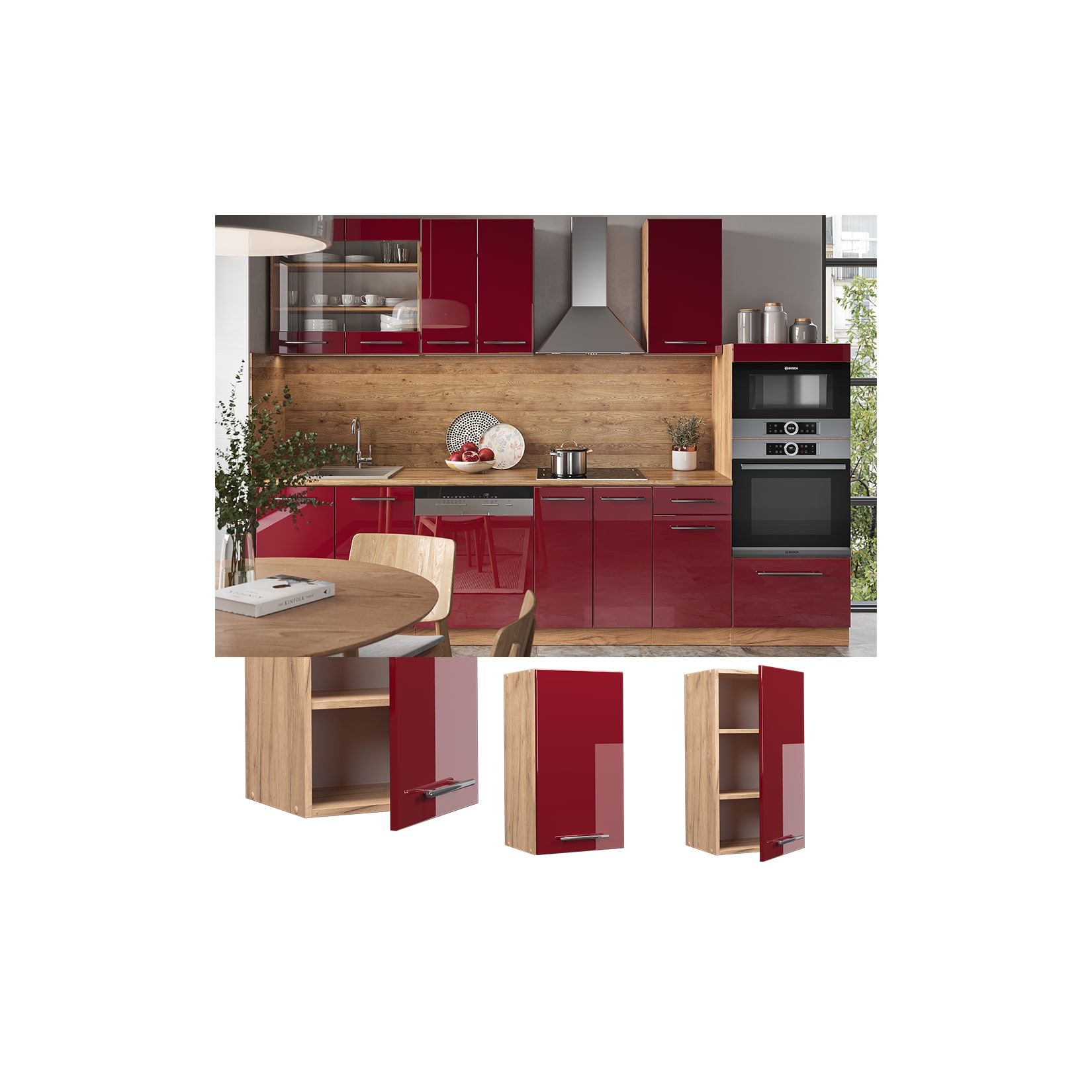 Vicco Fame-Line Hängeschrank: Eiche trifft Bordeaux – Ihre Küche im neuen Glanz