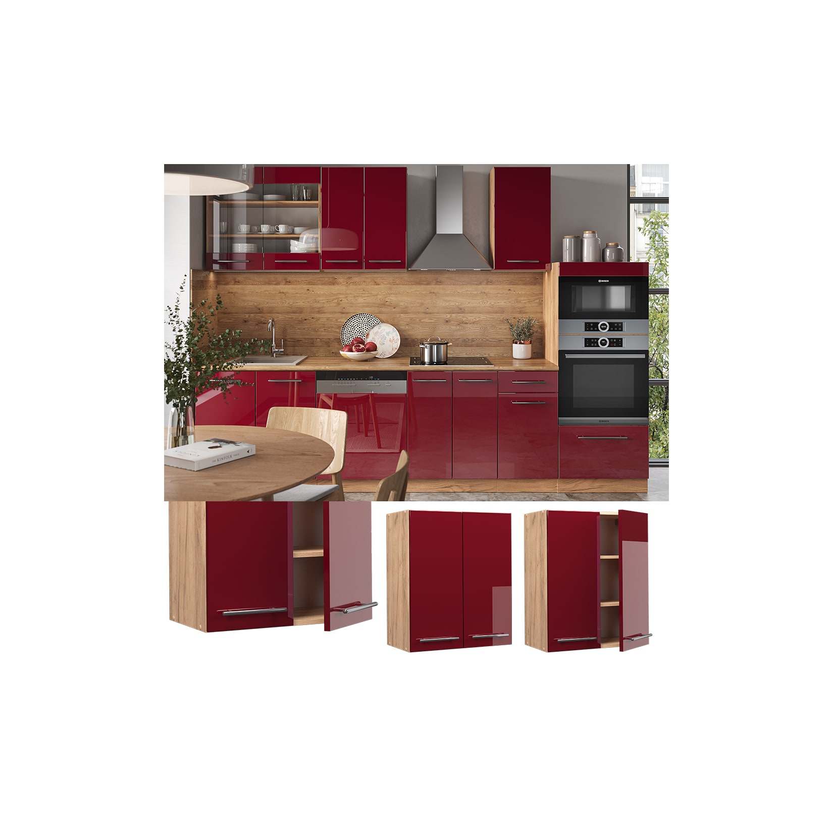 Verwandeln Sie Ihre Küche in einen Ort, an dem Kochen und Genießen zum Erlebnis werden! Mit dem Vicco Hängeschrank aus der Fame-Line holen Sie sich nicht nur praktischen Stauraum, sondern auch ein stilvolles Designelement ins Haus. Die Kombination aus warmer Eiche und dem edlen Bordeauxrot verleiht Ihrer Küche eine moderne und einladende Atmosphäre, die zum Verweilen einlädt.