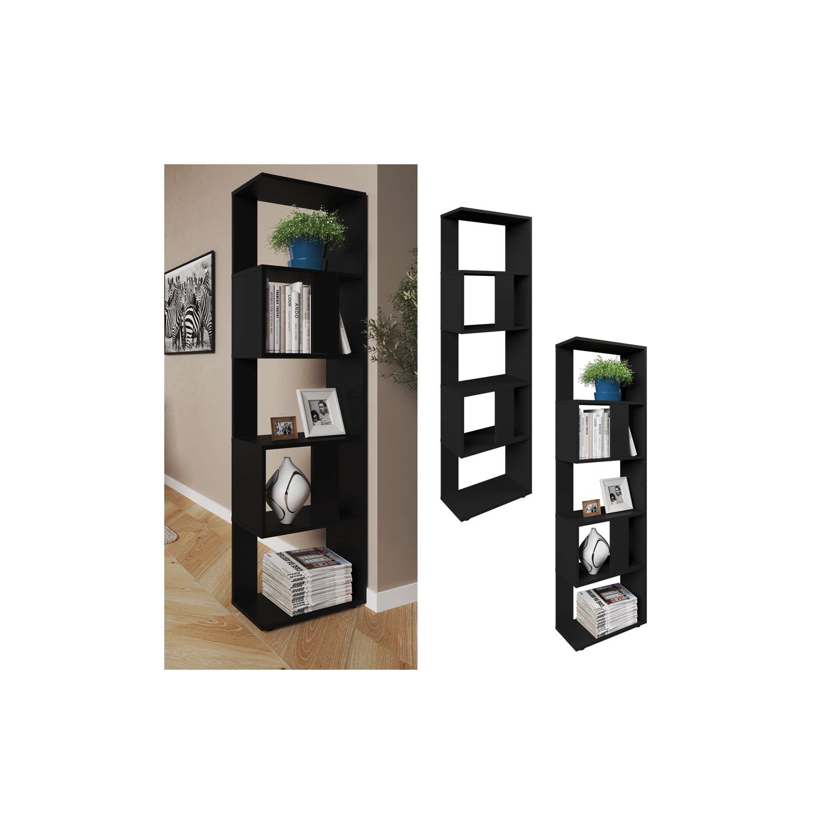 - Elegantes Schwarz: Die schwarze Farbe verleiht dem Regal eine zeitlose Eleganz, die sich harmonisch in unterschiedliche Einrichtungsstile einfügt.