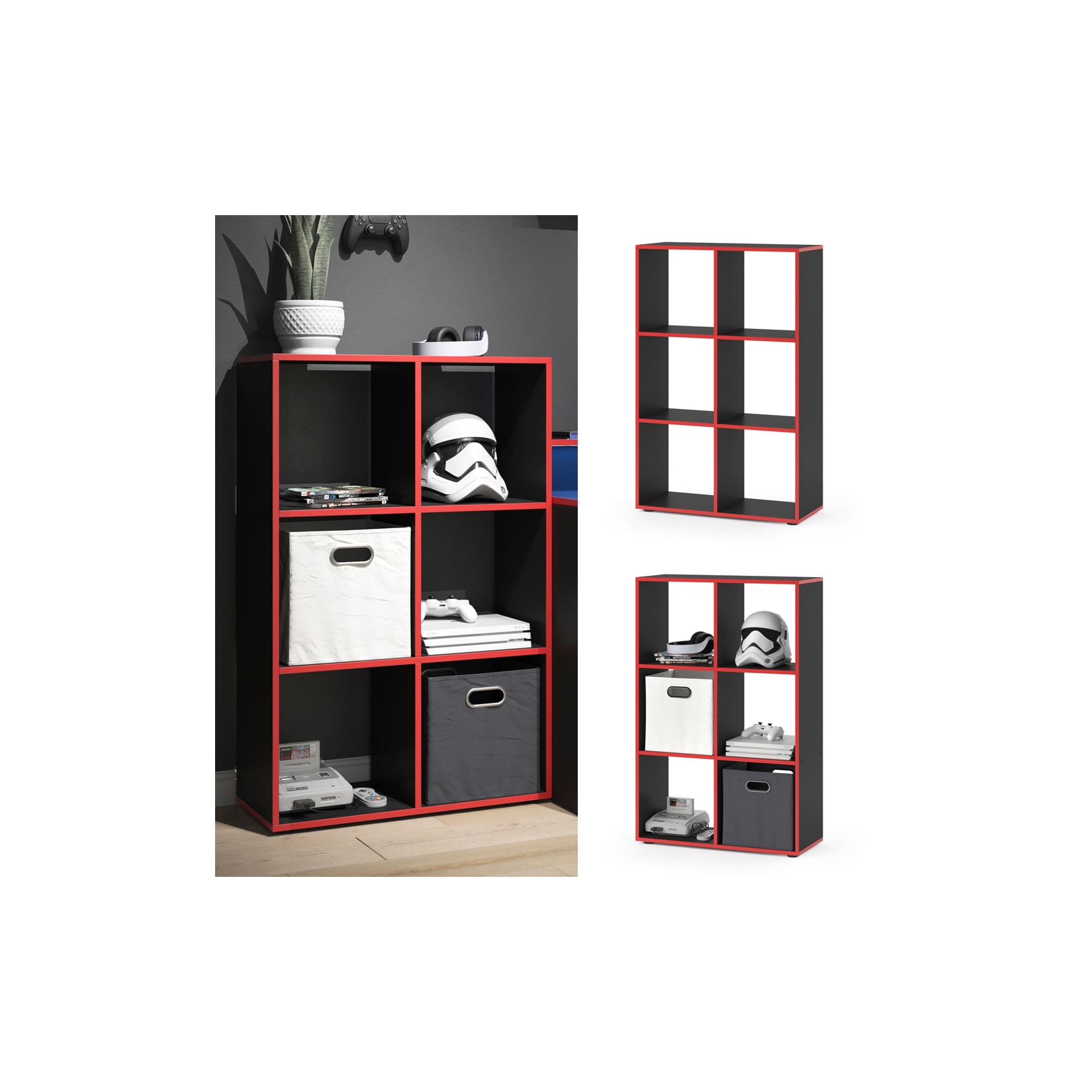 Die markante Farbkombination aus Schwarz und Rot verleiht dem Regal einen modernen und dynamischen Look, der sich nahtlos in verschiedene Einrichtungsstile einfügt. Es ist ein Möbelstück, das sowohl auffällt als auch harmoniert, und Deinem Zuhause eine individuelle Note verleiht.