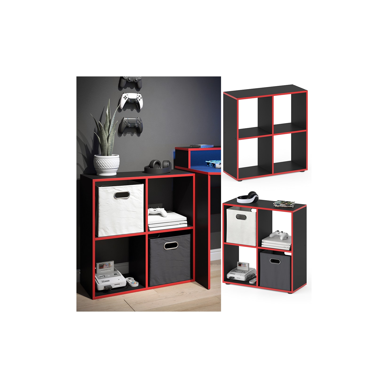 Die Farbgebung in Schwarz und Rot verleiht dem Regal eine besondere Dynamik und macht es zum Blickfang in jedem Raum. Gleichzeitig sorgt das schlichte, moderne Design dafür, dass sich das Tetra Regal harmonisch in unterschiedliche Einrichtungsstile einfügt.