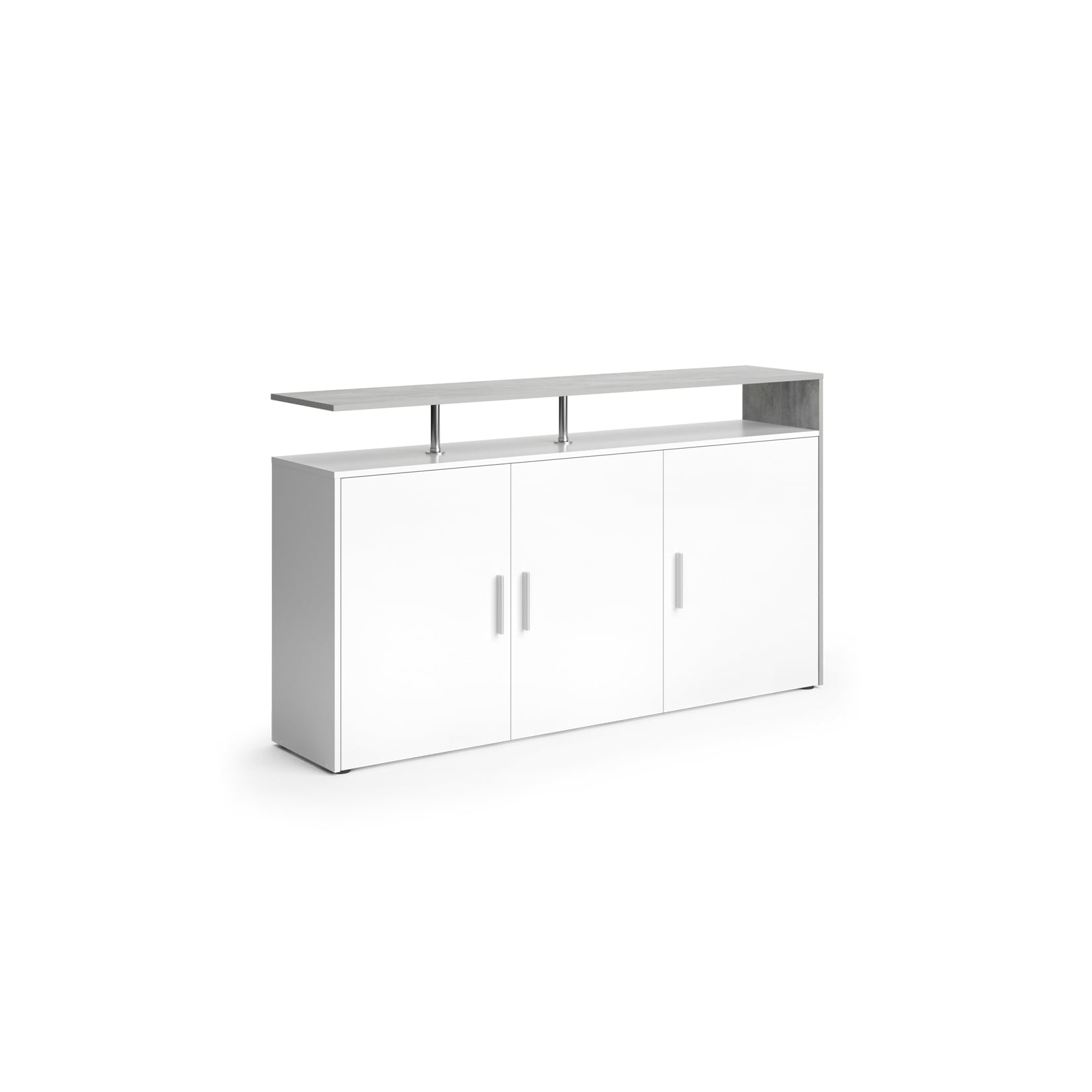 Die großzügigen Abmessungen bieten ausreichend Platz für all deine Habseligkeiten. Hinter den Türen verbergen sich geräumige Fächer, in denen du Geschirr, Bücher, Dekoration oder Kleidung verstauen kannst. Die Schubladen sind ideal für kleinere Gegenstände, die du schnell griffbereit haben möchtest. Und auf der robusten Oberfläche kannst du deine Lieblingsstücke präsentieren – von Vasen und Skulpturen bis hin zu Fotos und Pflanzen.